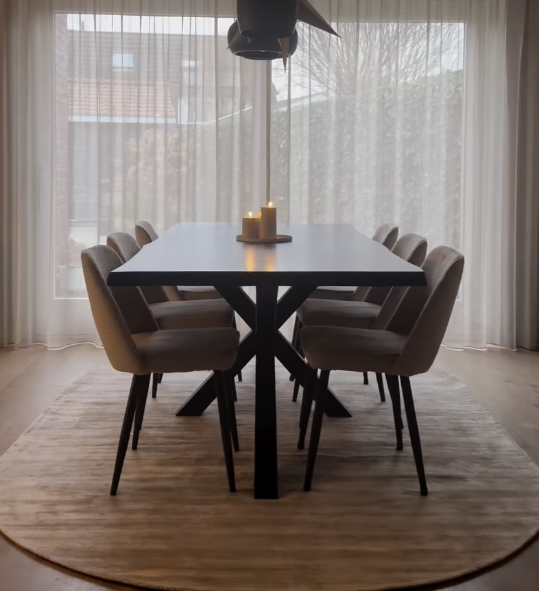 Avec ces 60 cm de plus, vos chaises restent sur le tapis, même quand vous êtes assis. Cela apporte un vrai confort pour vos invités et une praticité totale pour le ménage.